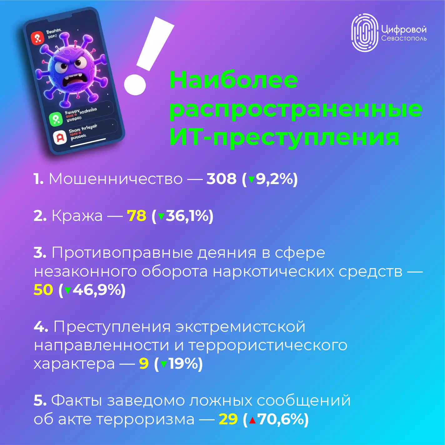 • Расследовано 212 ИТ-преступлений (55,9%)