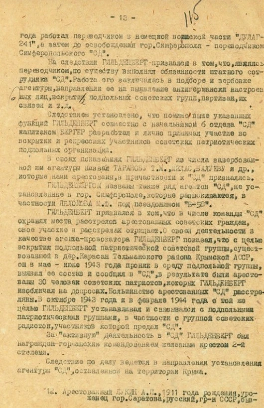 — Гильденберг А., переводчик, виновный в гибели 30 подпольщиков.