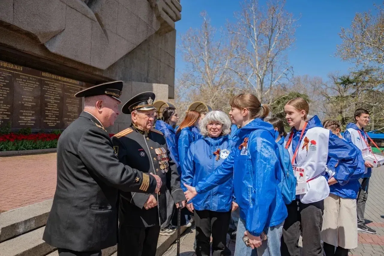 Старт дали у Мемориала героической обороны Севастополя 1941–1942 годов. На мероприятие пришли ветераны, а первые ленточки всем желающим раздали волонтёры Победы.