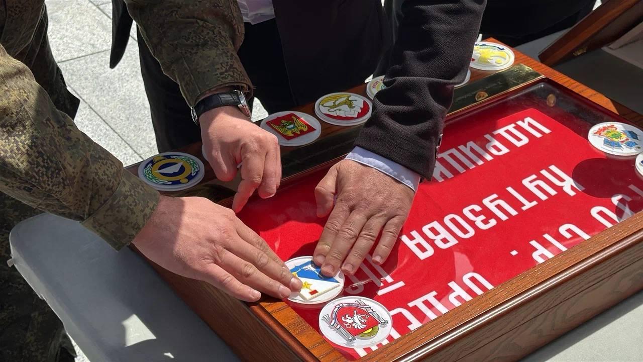 "Сегодня на Сапун-горе прошла церемония развертывания большой копии Знамени Победы – алого полотна штурмового флага 150-й ордена Кутузова II степени Идрицкой стрелковой дивизии. Здесь же установили стенды с изделиями дагестанских мастеров", – написал губернатор Севастополя Михаил Развожаев.