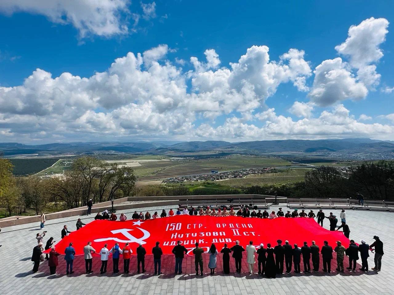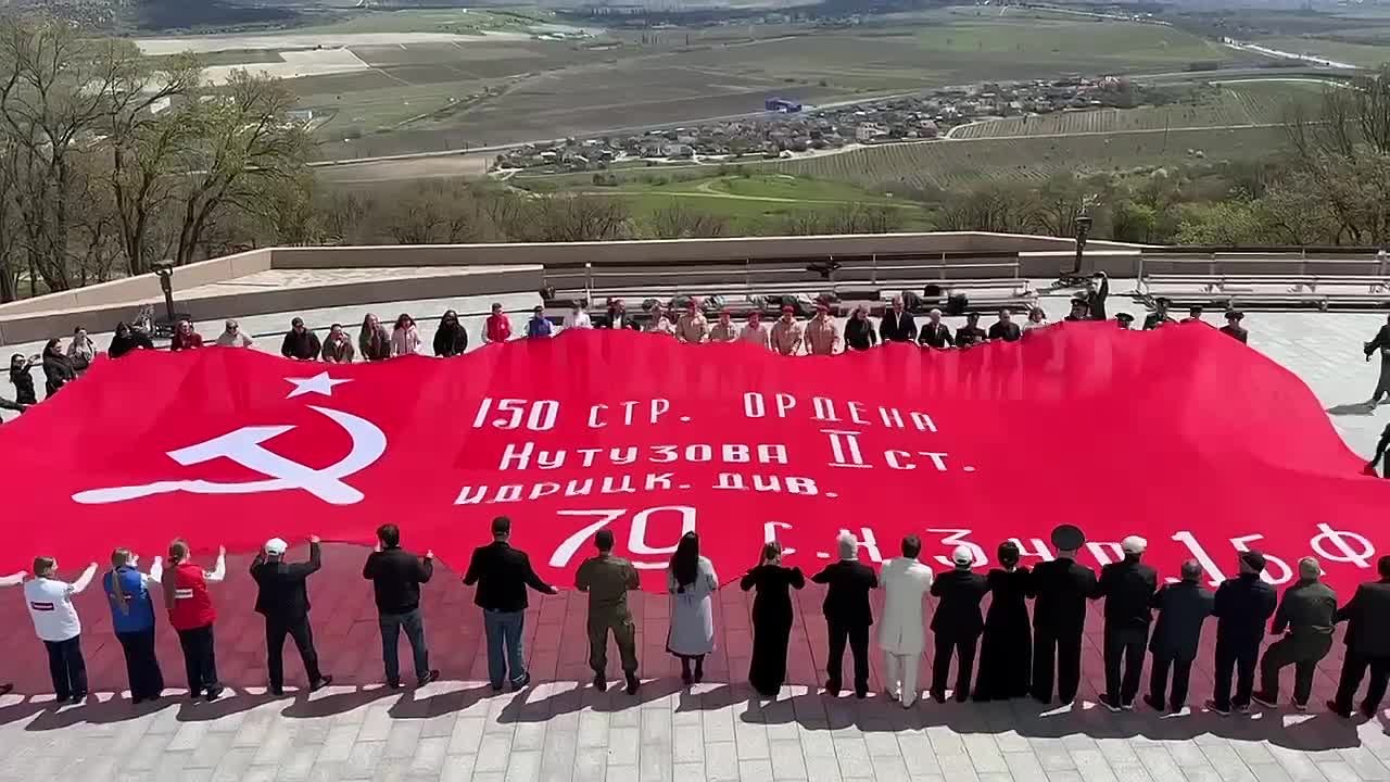 Он уточнил, что церемония развертывания большой копии Знамени Победы, алого полотна штурмового флага 150-й стрелковой дивизии, прошла на Сапун-горе. Здесь же установили стенды с изделиями дагестанских мастеров.