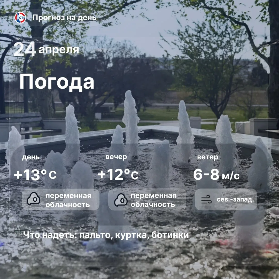 Доброе утро, севастопольцы! Сегодня в городе переменная облачность, осадков не ожидается. Температура воздуха поднимется до +13°C. Отличного настроения и удачи на день.