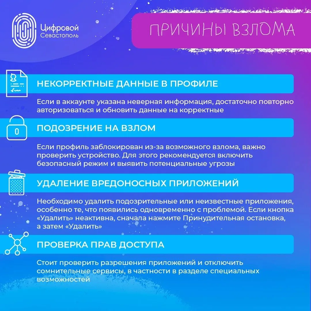 Подробнее о причинах блокировки – читайте в карточках!