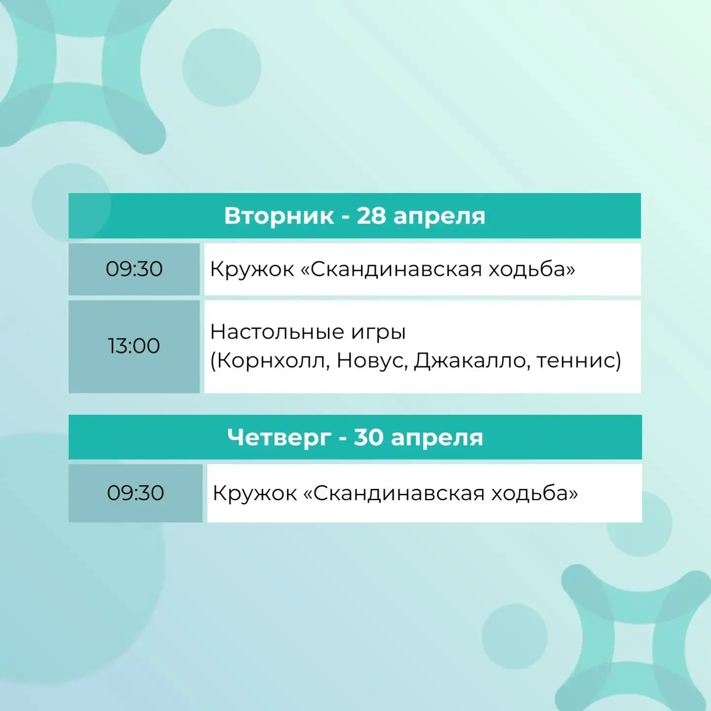 Традиционно публикуем расписание кружков для старшего поколения.