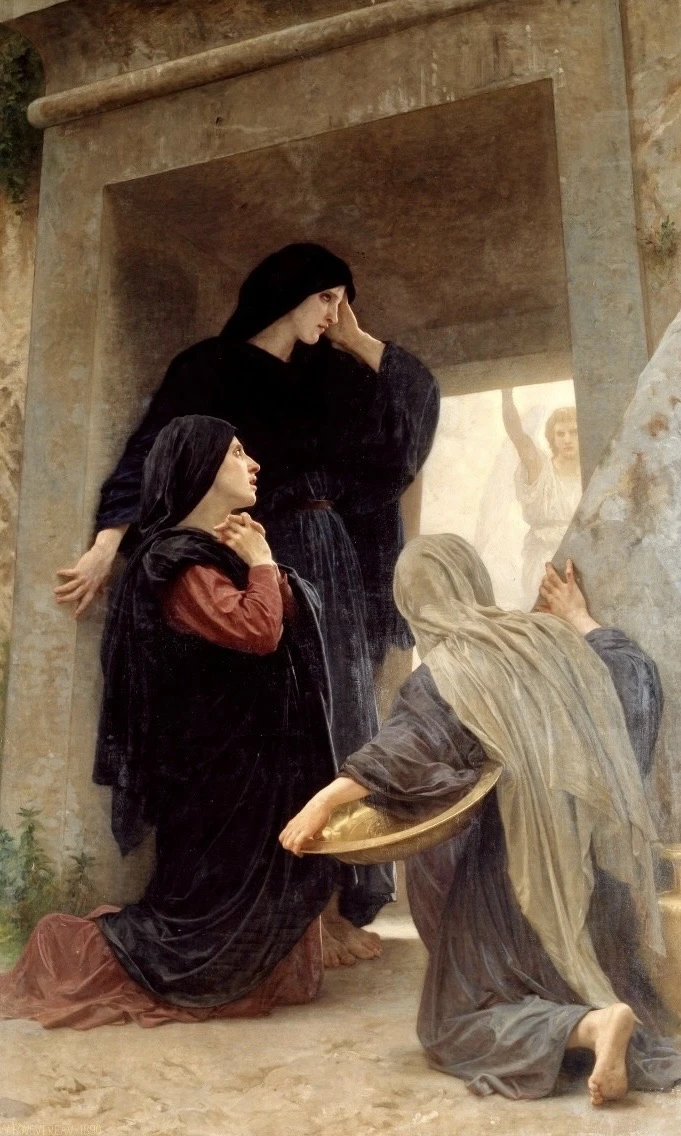 «Мария Магдалина и Мария Иаковлева и Соломия... приходят ко Гробу при восходе солнца, и говорят между собою: кто отвалит нам камень от двери гроба? И, взглянувши, видят, что камень отвален; а он был весьма велик» (Мк.16:1–4)