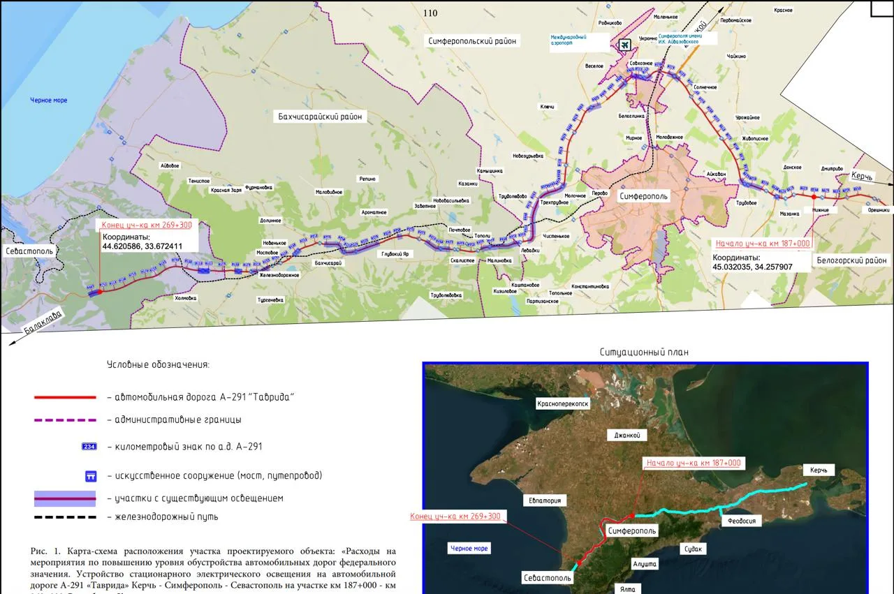Проект затрагивает Симферопольский и Бахчисарайский районы, а также Нахимовский и Балаклавский районы Севастополя. Освещение планируют разместить в пределах существующей полосы отвода.