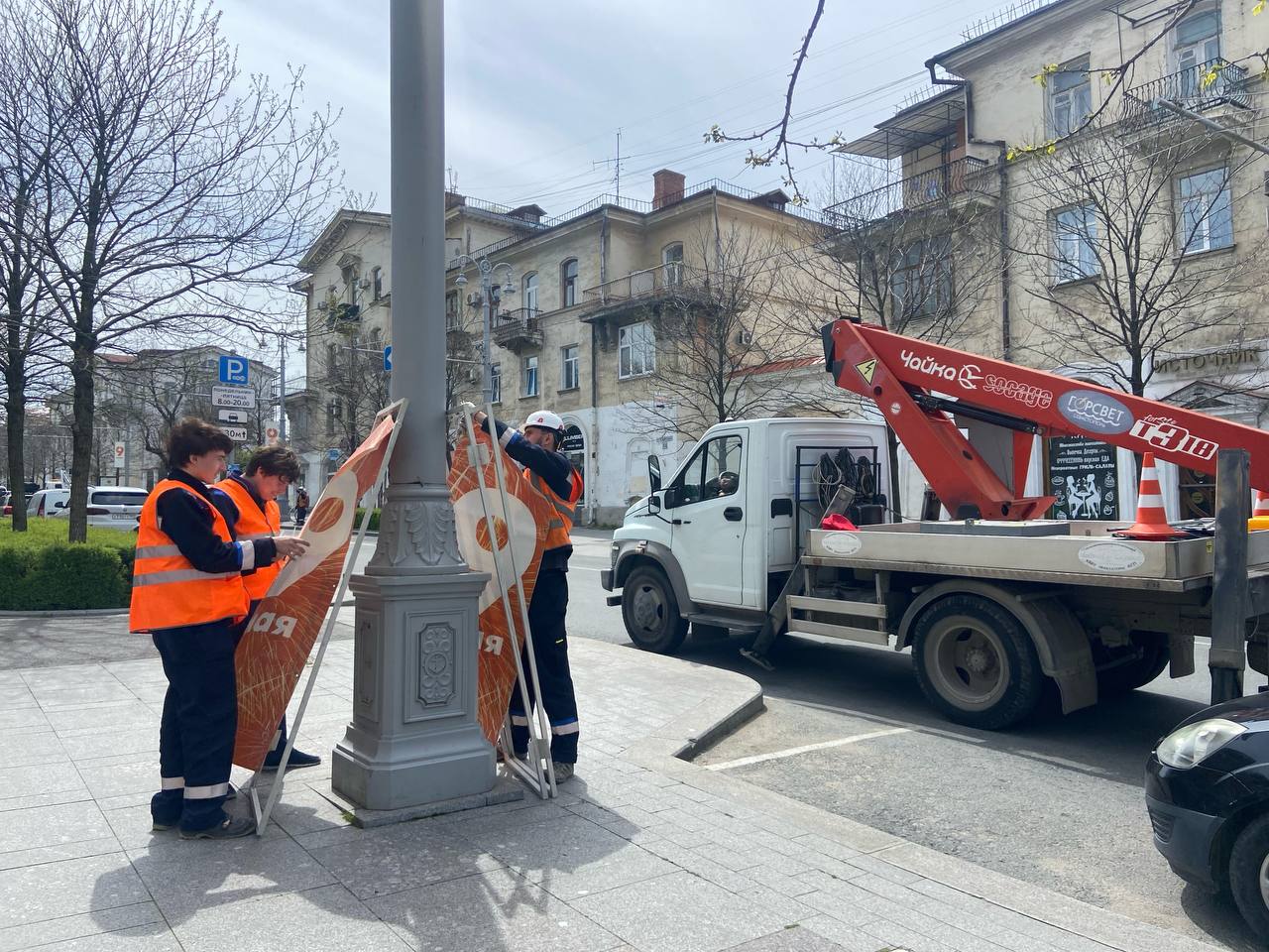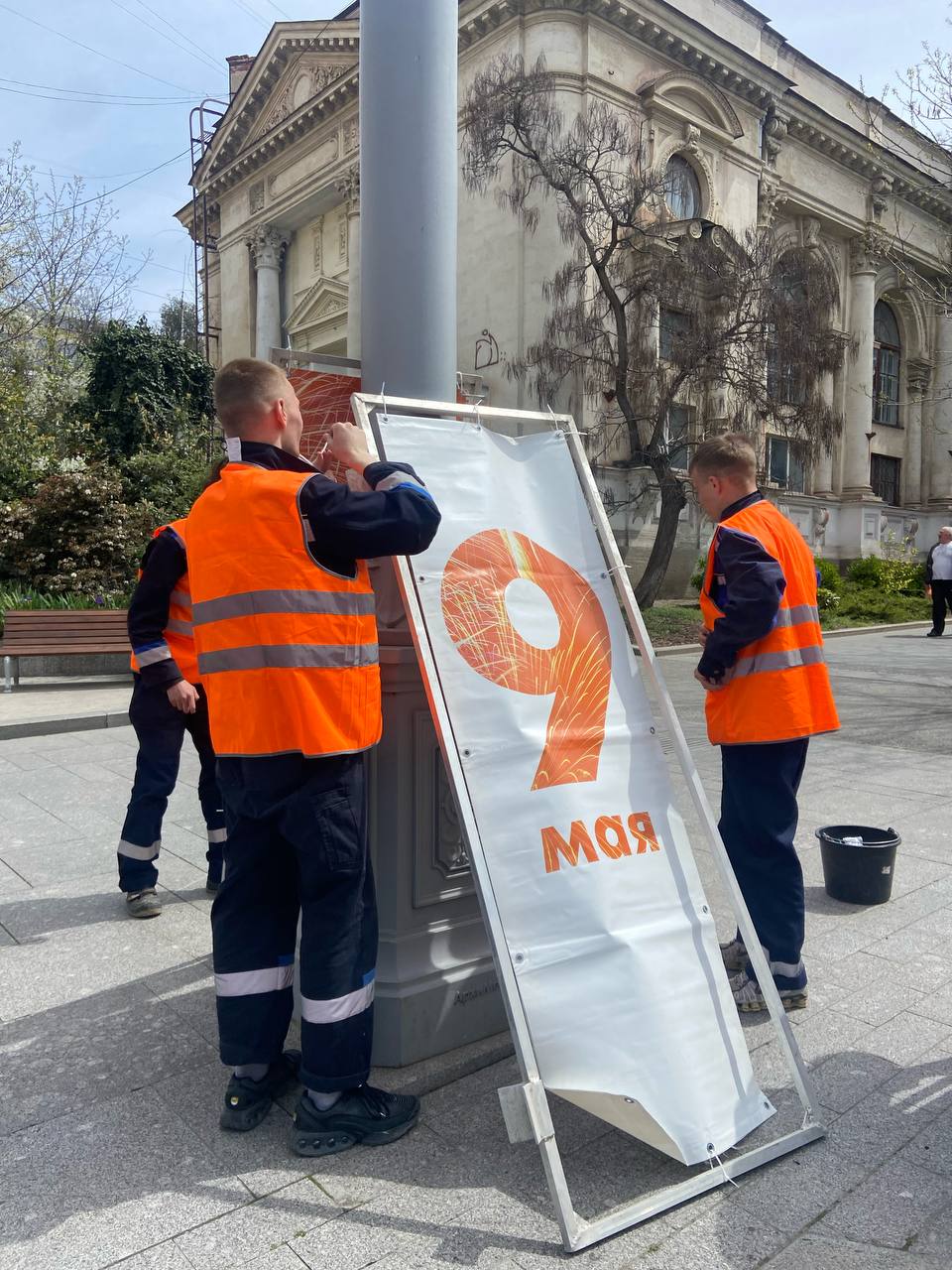 В преддверии празднования Дня Великой Победы устанавливаем праздничные баннеры на следующих участках: