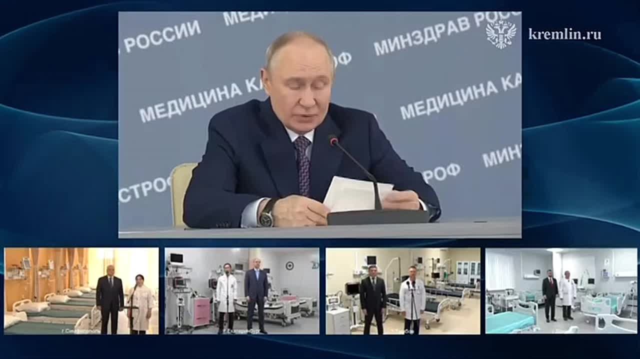Владимир Путин по видеосвязи открыл новые модульные скоропомощные приёмные отделения в Симферополе (горбольница № 7), Тамбове, Донецке и Екатеринбурге.