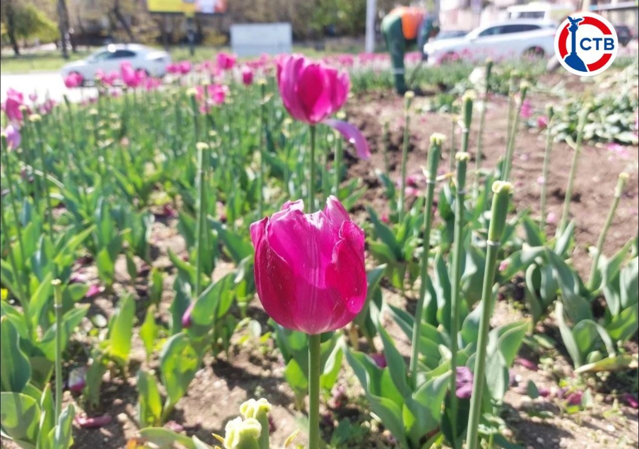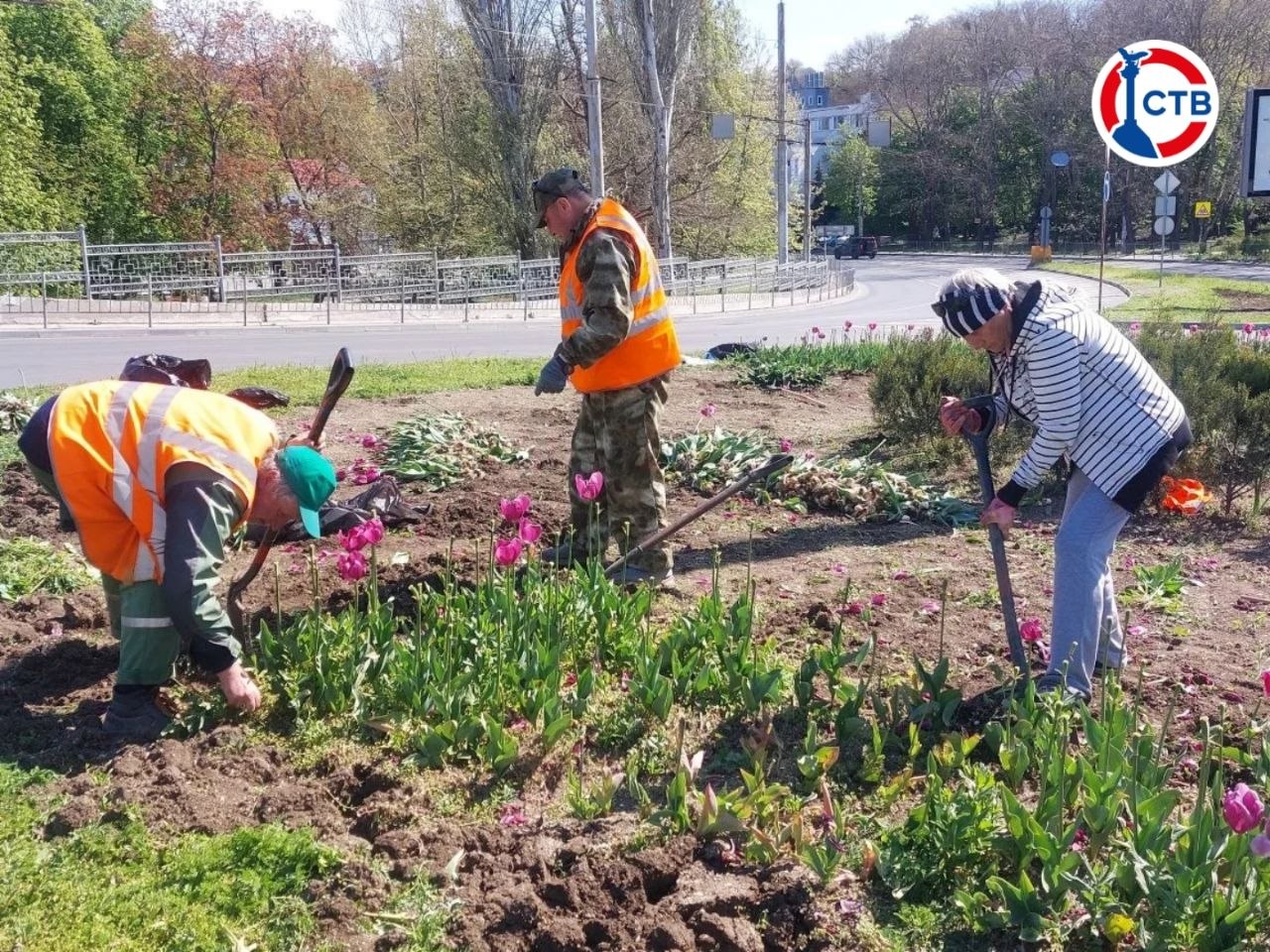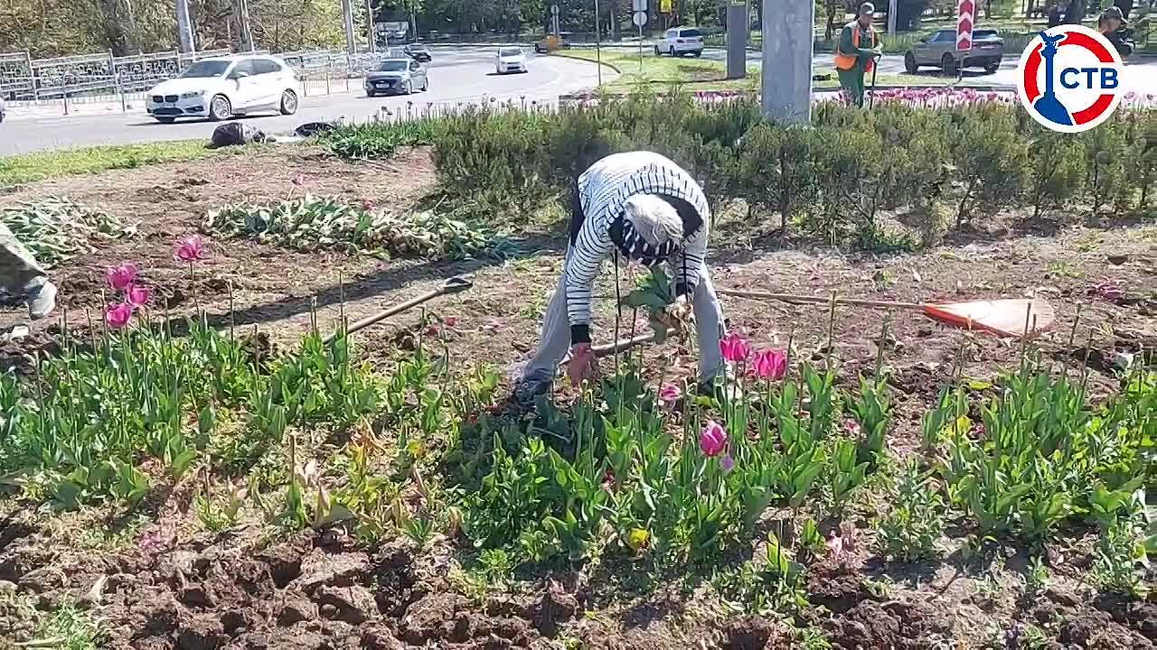 Здесь выкапывают тюльпаны – их сохранят для повторной высадки в следующем году. На смену им скоро придут летние цветы.