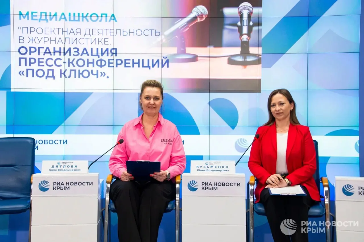 Темой этого дня стала проектная деятельность в журналистике, а также организация мероприятий "под ключ". Спикеры – руководитель проектов крымского подразделения медиагруппы "Россия сегодня" Анна Дятлова и редактор пресс-центра РИА Новости Крым Юлия Кузьменко.