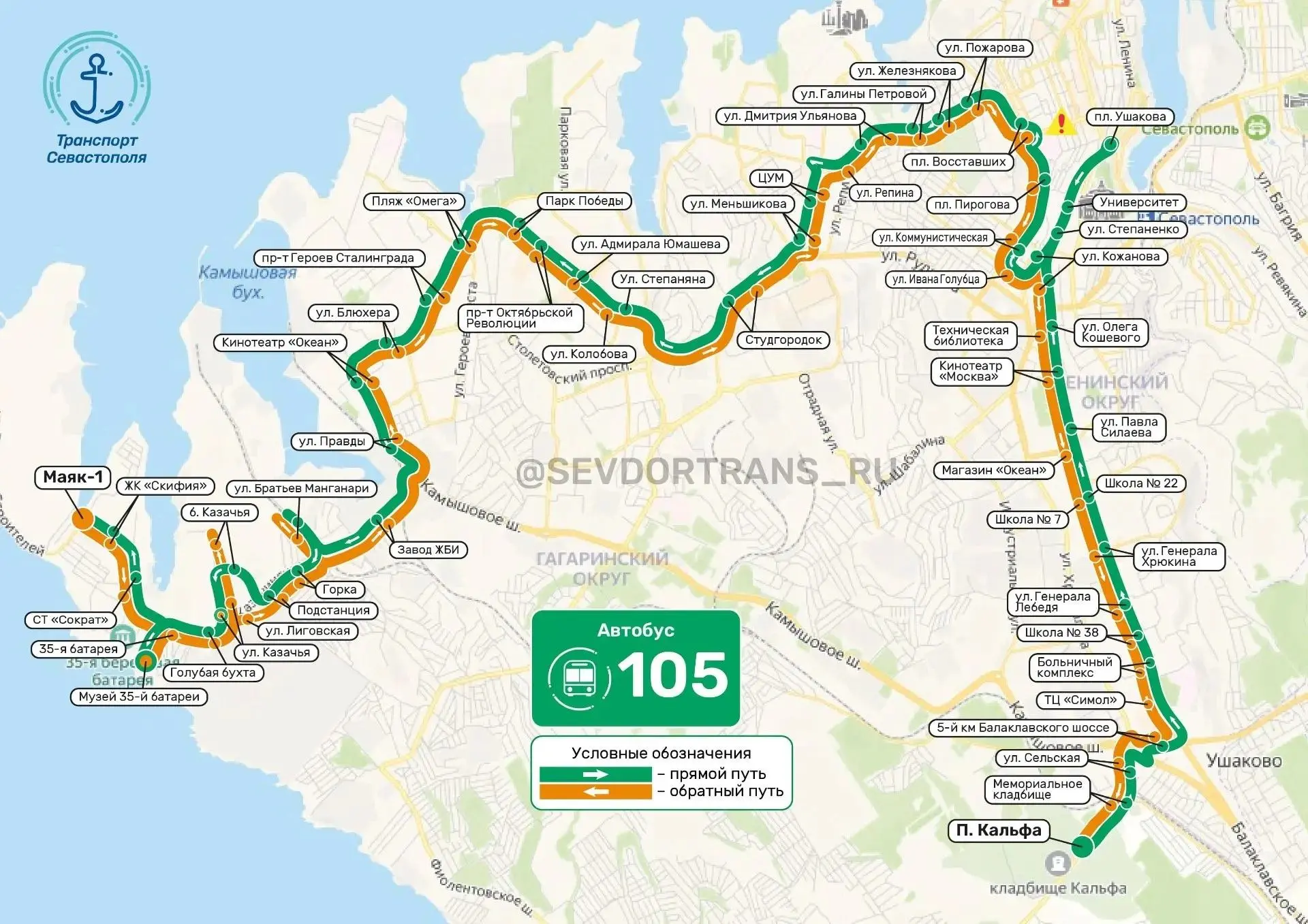 Маршруты «п. Кальфа — Маяк1» и «бухта Казачья — пляж Омега» теперь будут следовать с заходом на остановку «Музей 35й батареи» в прямом и обратном направлении. Об этом сообщили в дирекция по развитию дорожно-транспортной инфраструктуры Севастополя.